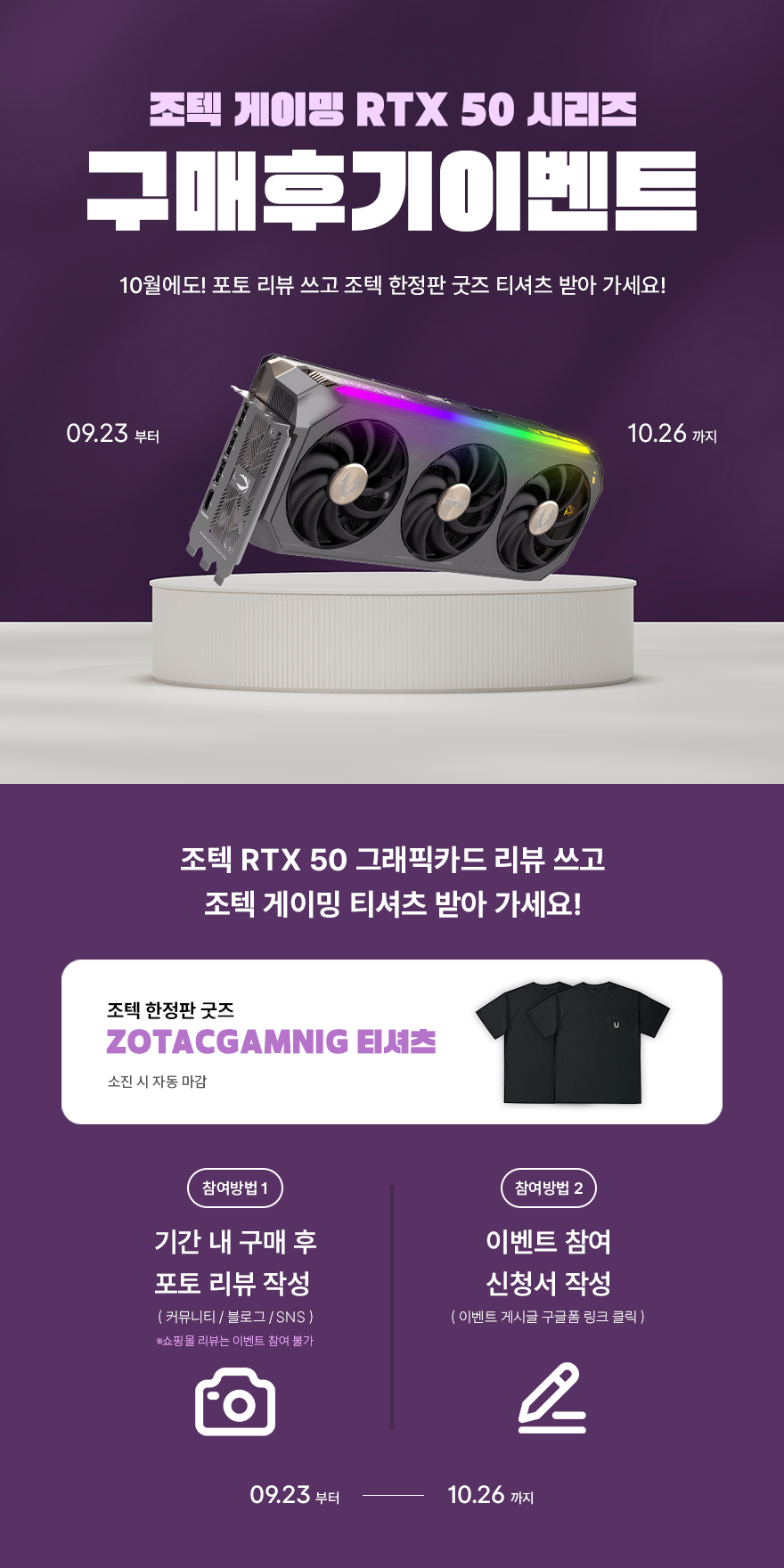 ÁöÆ÷½º ±×·¡ÇÈÄ«µå Àü¹® ±â¾÷ Á¶ÅØÄÚ¸®¾Æ(ZOTAC Korea, ´ëÇ¥ÀÌ»ç ±è¼ºÇ¥, www.zotackor.com)´Â ÀÚ»çÀÇ RTX 50 ½Ã¸®Áî ±¸¸ÅÀÚ ´ë»óÀ¸·Î Á¶ÅØ »çÀºÇ°À» ÁõÁ¤ÇÏ´Â ±¸¸Å Èıâ À̺¥Æ®¸¦ ÁøÇàÇÑ´Ù.